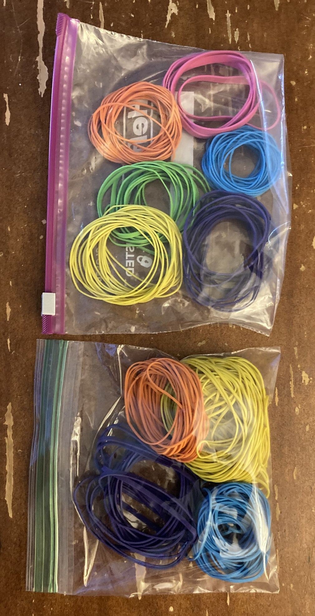 Similar to the twisty ties, this is an example of things that can be difficult to extract if they're stored a certain way. I had a bag of old, random rubber bands that I had accumulated over the years from various sources (e.g., Newspaper adds, flyers, and brochures left left on or thrown at my front door). I think I took a photo of it, but I can't find it. The previous bands were that ugly beige-ish color, and they usually broke when I used them. As a gift to myself, I bought a bag of new, colorful rubber bands in assorted sizes. Unfortunately, the smallest amount I could find was 1/4 lb which amounted to about 325 bands (yes, I counted them!!). I sorted the colors, decided how many of each to keep, and donated the rest.
